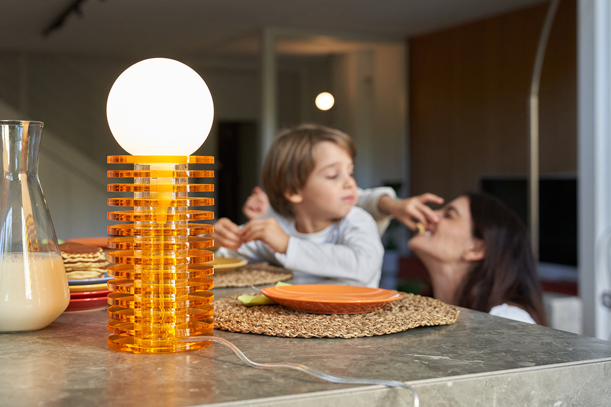 A lamp that not only illuminates space, but celebrates time. That transforms a quick breakfast into a ritual. That says, "Stop, this moment matters."